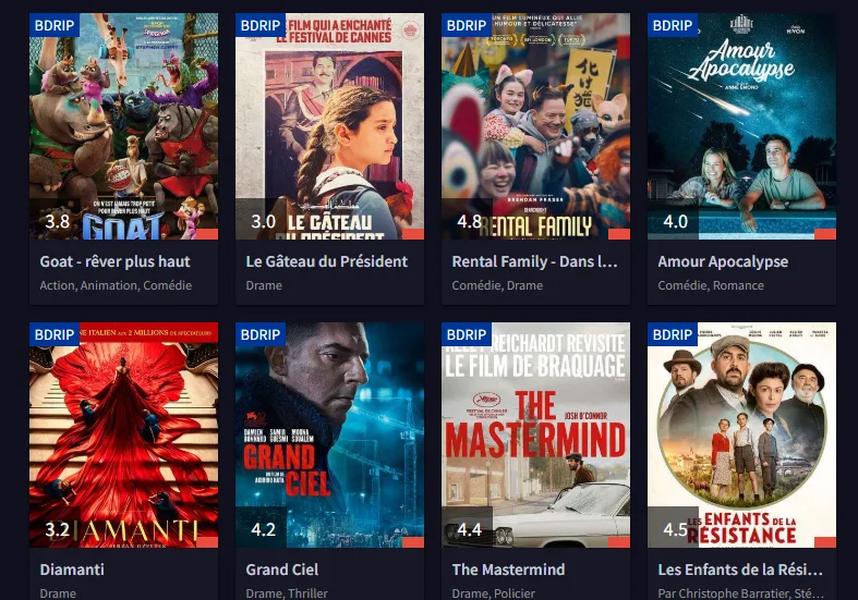Qualité vidéo variable : Les films et séries peuvent être disponibles en HD, SD ou CAM, avec des sous-titres parfois décalés.